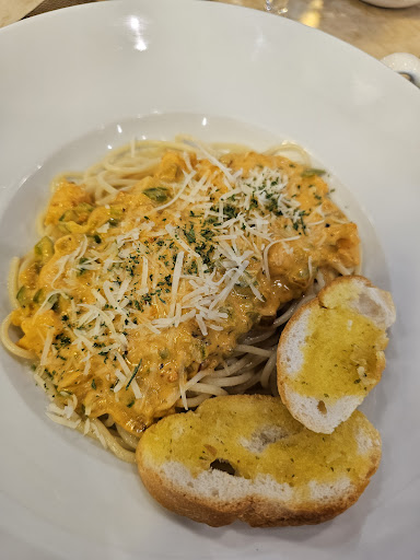 We had our family dinner here and enjoyed a wonderful meal. The Camembert Strawberry Salad was refreshing, with a light dressing and generous portions of Camembert and walnuts. The Kiniing Carbonara had a subtle smoky, salty flavor from the kiniing—an interesting twist on the classic. For the lasagna, we found the ratio of meat to pasta a bit uneven, with more meat than pasta, but still flavorful.