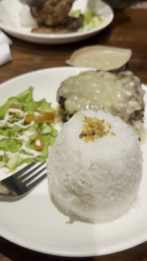 Went here because theyâre 100% pet friendly. Iâm just so happy we found another place where our furry baby can stay and be herself. Firstly, no issues with us coming in with a medium sized dog. An ASPIN. Feel like had to emphasize that since most establishments prefer dogs with breed. Anywayyyy, the place is for students, I feel like. Cos there are these reminders everywhere on their quiet hours policy. Or maybe thatâs a city thing, donât know đ Food was great too! We ordered the pork steak and the salisbury steak. Both properly portioned at 200-300 price point. Coffee was great too. I wouldnât say that I have a thing for coffee, but that my partner and I enjoy it a lot. Their fries were a mix of potato and kamote. I appreciate that. Maybe a little feedback is itâs a little overpriced at 250 and too thick to be called fries. Due to the weather, they became soggy. That could be improved for sure. We missed to have some pasties but weâll get some next time. Overall, a must try especially if you want a pet friendly cafe that serves rice and not just snacks/pastries/dessert. Service is good, too. Order at the counter and wait for your buzzer to go off to get your food. Itâs good that itâs not a table service kind of thing because they wonât have to look over secluded spaces for anything that a diner might need. Also, clean as you go. Trash bins are by the entrance/exit. It wonât be hard to miss. Bussing the plates is also by the condiments and utensils. So you wonât miss that too after youâre done eating. I like the idea because I noticed that there were only 2 people manning the cafe. At least they wonât have dirty tables to clean and focus on order taking and making. Feedback would be for the staff to mention where to get condiments and return used plates when orders are served at the counter. That would help set the minds of the diners to clean up before they leave. Amazing place....