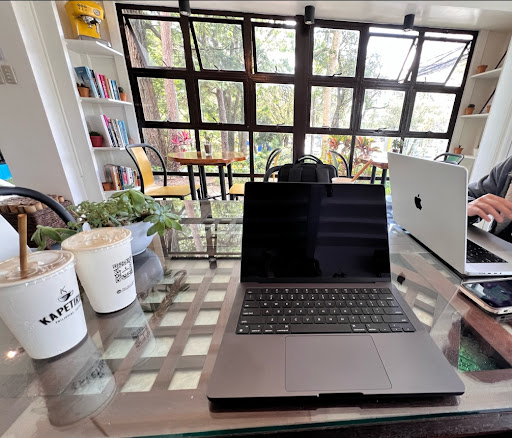 The shop itself is cozy, with about six small tables for two and one larger table that seats six. It’s the perfect size for a small coffee shop, though parking can be a bit limited due to its size. Despite this, the ambiance is inviting and just right for working remotely. The internet connection is both stable and fast, making it our go-to spot whenever we need to work outside the office.