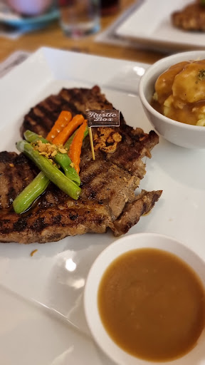 Menu: Price on the menu was not updated. I ordered the rib eye steak for 290PHP. Waiter told me that they had upgraded their meat to USDA beef and it was now 550PHP. Additional chrges if you want a special rub. Signature rub was free.