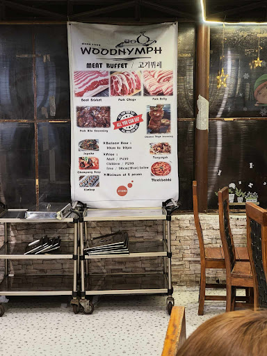 Read moreMy dad thinks it's the best Korean buffet in Baguio. Well, I haven't been to enough places to share the same verdict, but I've been to a couple Korean buffets and other buffets as well. Woodnymph is quite a refreshing hangout place. Even with many people, in my opinion, it doesn't feel too crowded. Maybe because I enjoy being surrounded with flawless Korean faces? Kidding aside, the location is really good. Ambiance is not captivating, but I liked it. I've been to a K-buffet in the past where we were literally served by our personal server with unli food. But we had to ask her to bring in more of what we wanted, which was quite awkward for introverts who just want to keep the food coming. But Woodnymph, just like most traditional buffets, lets you get your food from a buffet table and bring it to your spot to grill on a hot plate. You get zero unwanted assistance, but staff will gladly help if you want them to. Place is quite clean, including the comfort rooms. Not squeaky clean, but clean enough to not go ikk! Also, teen fans of K-pop may go gaga over the buffet wall filled with k-pop posters lol. Food is quite good (not the biggest fan of Korean food), but I just wasn't into the flavor profile of some side dishes. But all flavors are up to our liking, I suppose. You have to try it to know if it's...