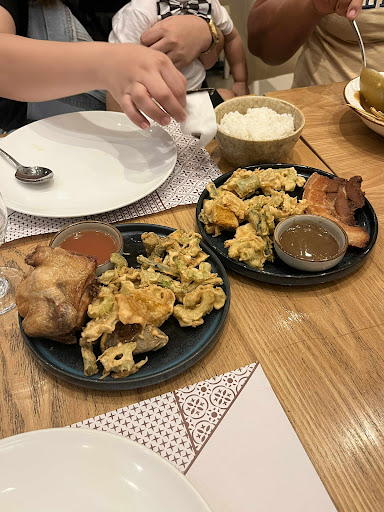Now onto the food! We ordered a few items from the menu. The portions were reasonable, but I have to admit, the flavors didn’t really wow us. The kare kare was decent, but the lechon kawali had an overwhelming taste of star anise. The fried chicken was just okay, and unfortunately, the garlic fried rice didn’t meet our expectations at all—it was quite limp and bland. I’ve had better garlic fried rice at local eateries! The halo-halo had a strange, slimy texture, perhaps due to the ube, and it wasn’t as creamy as we hoped it would be. (BTW, my mom finished the pork and chicken that meant for us “Nanghihinayang kasi siya sa food” kaya pinilit niyang ubusin 😓)