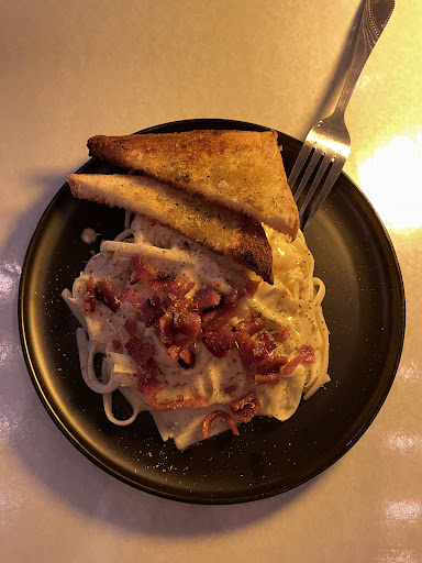 Food & Drinks: Carbonara with Toasted Bread: 4/10. The carbonara was overly sweet — it tasted like it had condensed milk in it, which isn’t what you’d expect from a traditional carbonara. The toasted bread leaned too salty, possibly due to excessive salted butter. Spanish Latte: Too sweet for my son’s taste; the coffee flavor was overpowered by the sweetness. Americano: This was a pleasant surprise. Strong and smooth — I’d give it 8/10. Overall, it’s a perfect stop if you’re looking to take a break near the port and grab some snacks or...