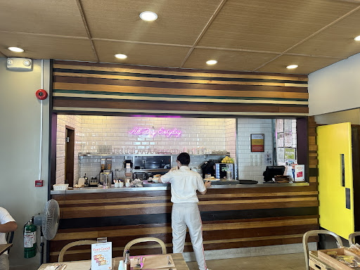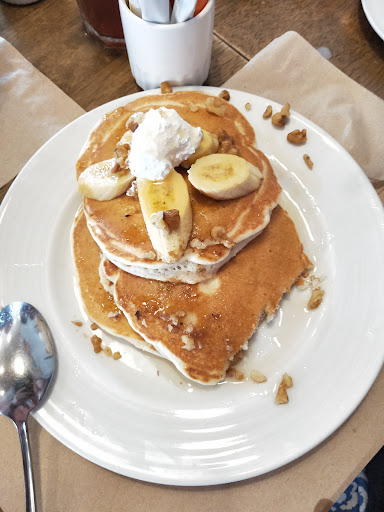 All day breakfast wasn't available and as a westerner it's really all I was craving, just wanted a ham and cheese omelette but it wasn't available yet when I got pancakes it had bacon and a fried egg on it. Surely they could have made a bacon and cheese omelette. Maybe the omelette maker called in sick 😷🤔 wife's meal came after the other r people had just about finished their meal. Toasted sandwich also not available, maybe no bread delivery today. The young men serving seemed to be doing the best they could with what they are made to deal with. I had a bacon and cheese omelette with a fried egg. It was ok but having been quite interested in trying a pancake house I probably wouldn't...