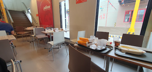 The windows are dirty, the service is slow and if we didn't ask for a follow up, i think we would have waited for more than 30 minutes just for our food and there was only a few people in the restaurant too. The food was good but when I looked down, i saw a hotdog on the floor. Like, ew. Can you guys atleast clean this jollibee? They only clean tables after 5 minutes after the customers leave, like aren't you supposed to clean it as soon as the customer leaves?? Again with the windows , they look like someone has spilled milk on it. Even if the food was good, CLEAN THIS JOLLIBEE! I beg you, hire some cleaners. The seats upstairs were more disgusting, this is not jolibee's usual type of service. So pls...