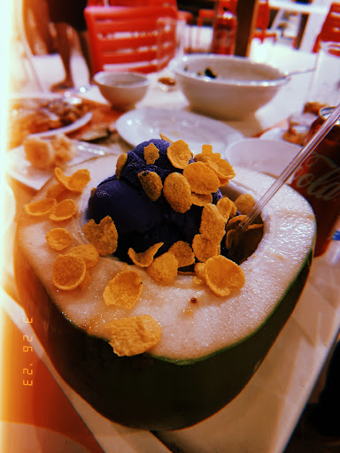 We ordered prawn grilled in lemon butter sauce, calamares, pusit black rice platter (this is interesting; can't say it's sooo good, but it's just fine), baked scallops (๐๐ป), sinigang bangus, and buko halo. The food tastes fine, I liked the baked scallops the most. Buko halo is too sweet for me (with lots of kaong (came in 3 different colors) and akmost a pint of ube ice cream).