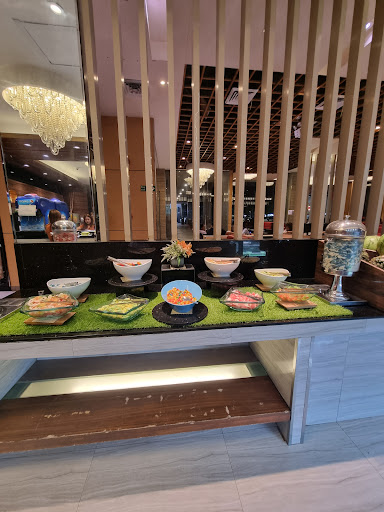 Ā Ā Ā Read morePretty decent food Pork, Chicken, Beef, Fish & stuff that comes out of the Ocean. A number of Cooked dishes. That u can start eating right away. Besides Sushi or make a salad run also man made crab stocks ( U don't have 2w8 4 items to be grilled even tho thr worth the w8) They make crepes to order included. Gud Desserts lot's to pick from. Cakes etc. Or a few gummy candies Drinks Pepsi products Tea & iced plus 2 or 3 juice choices. Coffee & Hot choc or Mocha (tasted kinda water downed) Only 2 ice cream flavors offered per day. Not always Choc or Vanilla But they have a Choc Fondue fountain that u can add on a spoon full at a time. If that's to sweet. How about some fruit Watermelon, Pineapple, Papaya & Rambotan that I can remember. @ a OK price They do offer beer but that's an added charge. Warning don't look around...