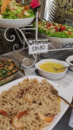 Had dinner (buffet style), there's neither much food selection nor servings for a buffet. If you're for a dessert dinner, I don't recommend it either as the desserts are unpalatably dry and hard. Too much wrapper for a roll, pasta dishes ordinary, salad is just lettuce leaves, and the mixed fruit, mangoes and watermelon slices are nearing rot. And despite the scorching heat, the water is lukewarm and the blue juice does not...