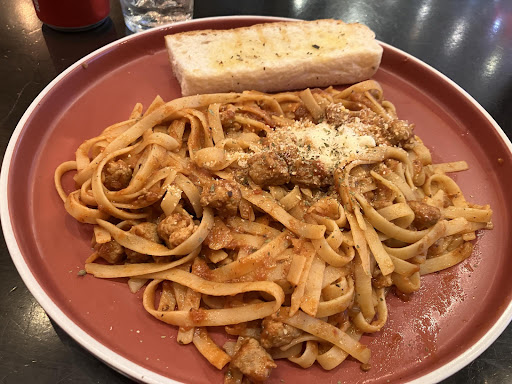 I ordered the sausage chorizo pasta. The picture looked pretty good. The waitress repeatedly mispronounced "fettuccini" while explaining the options. She told me that it would take 20 minutes, which I think should mean that it takes some work to prepare. But when it arrived it was just barely hot. Perhaps it took 20 minutes to defrost.