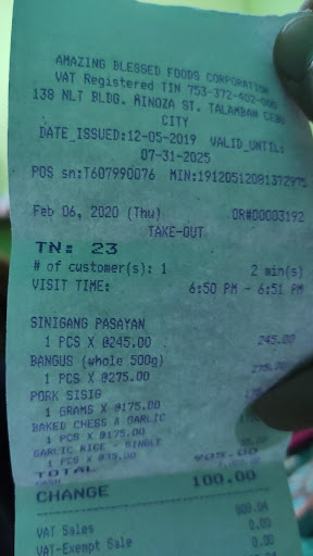 I ordered for take out, I place the order at 6:50 got my order at 7:40. I would understand if there are just too many orders but there were 3 groups of customers that arrived before me that got their order faster and was able to eat right away. I asked after 30 minutes where my order was, they said the baked oyster cheese and garlic was not yet done out of my 4/5 order but I always see servers going out of the kitchen serving oysters to the other customers before me!! Also, your sinigang shrimp is just too bitter like water no taste at all and your sauce is spilling all over the plastic to the other foods in there that are only covered in aluminum foil. Would not recommend this place if you're in a hurry, WILL TAKE A LOT OF TIME JUST TO GET YOUR FOOD! Although, other food taste from okay to good but will not cover the time...