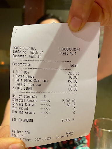 My points while dinning sa Lahug branch as a first timer : the food was yummy +++ they gave freebies baked scallops But here are my cons: its very sad. The vibes is so sad,itโs not well-light itโs too dark Glass and walls seen on the photos has stains Quite embarrassing that the floor was dirty and sticky, the foreigners beside us even asked the lady to clean the floors For its small space the area is hot Lastly, as a restaurant especially seafood thereโs no washroom or a hand wash area Everything is ok raman food is okay but the cleanliness lang gyd sguro sa area needs improvement ๐ฅฒ I didnโt confront the waitress kay sheโs good rmn and siya rpud usa, hopefully management...