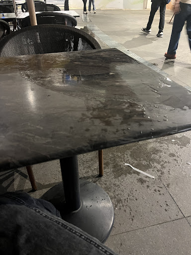 Eventually, she did come outside to wipe the table, but she barely cleaned it. The table was still wet when she left, and she splashed water while wiping, which got on my pants. To make matters worse, the waiter placed our utensils directly on the wet table. Where is the sanitation in that? Is this really up to your health and safety standards?