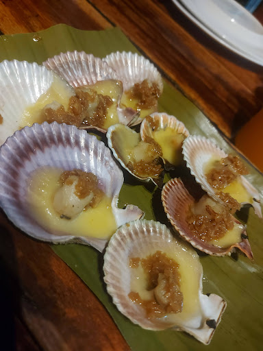 We ordered their kare-kare, baked scallops, tuna panga, garlic buttered shrimps, a platter of rice and their large signature cordova coolers plus their mango shake.