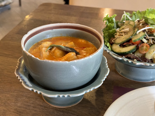 Read moreI finished my classes earlier than expected, so I had the opportunity to have lunch here. The atmosphere is pleasant, cozy, and has a touch of Vietnamese culture. The staff is friendly and approachable, which is a nice touch. Although the sweet and sour fish was too sweet for my taste, I would rate it a 4 out of 10. I had ordered the beef red curry, but they served me the seafood red curry instead. I didn't complain as I understand mistakes can happen, but I wasn't a fan of the pineapple in the curry. Overall, I would rate it a 6 out of 10. On the other hand, the yum nua or Thai beef salad was excellent and deserving of a solid 9. I enjoy the combination of nutritious greens, their tanginess, and the depth of flavor. The only issue is that the salad is saturated in sauce, which makes it difficult to eat cleanly.