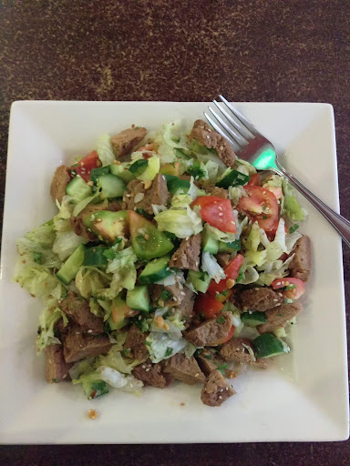DISHES TRIED: Chickpea Wrap Samosas Chicken Garden Salad (Fake Meat) *pictured below
