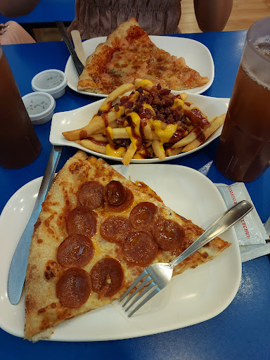 THE REVIEW SERVICE: Friendly staff. They seem capable. Communication issue a little bit in English, but not too bad. The staff is happy and help each other, which I like to see. CLEANLINESS: Pretty clean, new looking, and bright place. Staff are well groomed. ATMOSPHERE/COMFORT: Seating is typical of a pizza joint. It was just a little hot there except if you were directly in front of the AC floor unit FOOD QUALITY: David Portnoy would give this place probably between a 5 and 6. Its so close to being great. The appearance is superb. Its real mozzarella, plenty of it. Quality of cheese is medium, not a lot of stretch to it. The pepperoni has a correct flavor as does the sauce. It's medium greasy, which I love. For those that do not, they have napkins. My big complaint/suggestion is The pizza is under cooked and doughy, which is reflected in the flop of the slice and also the poor, unclean cut on the slices. It needs 1-2 more minutes. Both the sauce and pepperoni could have more intense flavor/spiciness, although the flavors are definitely in the right direction. I don't know if their hands are tied, since they have to cater to the Pinoy palette. My wife tried the fried chicken and said it wasn't that good. The breading was very light and not enough to even make a crunch. COST/VALUE: Their pizzas are HUGE for the Philippines. A whole pizza will feed 2 pigs, or 3 very hungry people, or 4 for an average meal. Their price is only 100-200P above the price of a much smaller one....