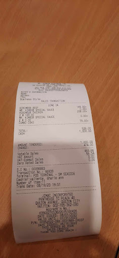 Subsequently, I decided to augment my order with an additional item, incurring an extra charge of P79.00. The total bill amounted to P526.00, and the cashier handed me two receipts without my prior scrutiny. Regrettably, upon inspecting the receipts upon the arrival of our order, I discovered an inconsistency. The receipts accounted for only P20.00 (for a bottled water) and the aforementioned P79.00 addition, rendering an erroneous total.