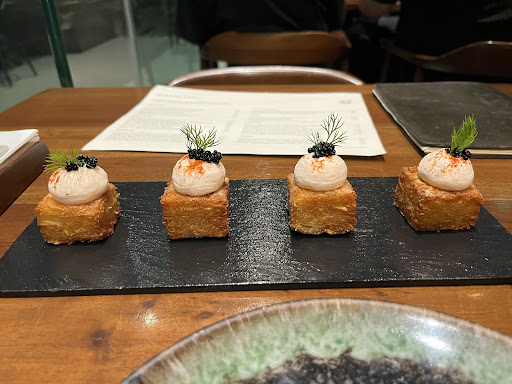 I started with their Potato Hash - thinly sliced and crisp with some tenderness at the center, topped with a mousse of Smoked Mentaiko and Balsamic Caviar. Starting from the texture of the hash which resisted just enough before yielding completely to the knife, to the perfectly balanced brine and sweetness of the roe, I knew I had found my new favorite appetizer.