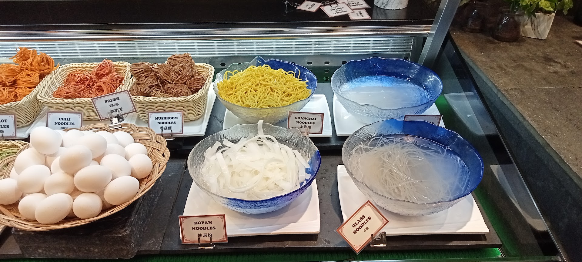 Food - There is a bountiful amount of variety in the food. There's soup where you can select every aspect of it, from the veggies and meat that go inside it, to the type of noodles that you want. There's salads, sushi, ice cream, and even meat and chicken strips that you can grill, with a sauce dip that you can fully customize, and a variety of drinks like infused water, fruit drinks, soft drinks, and even alcoholic drinks. However, even with the variety I think that the food tasted mediocre, especially the sushi. The Asian food and the soup ingredients were the only ones worth mentioning and the rest are...