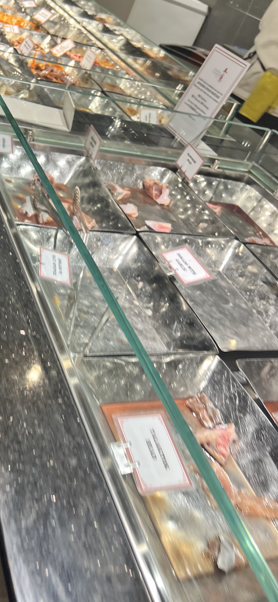 When we arrived, the buffet stations were practically empty. No meat at all—just scraps of pork heart and chicken bones marinated in different sauces. That’s it! Even the fish section was just a pile of bones. We literally had to beg for small slices of meat fat just to get something to grill or add to our hotpot.