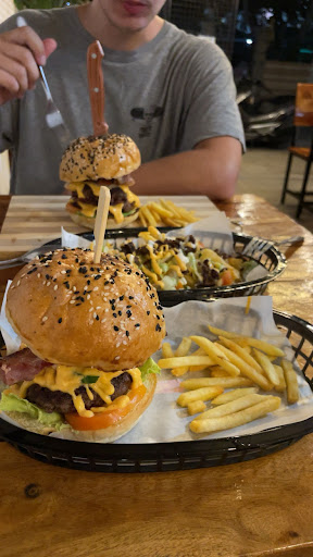 We ordered three types of burgers (Hell’s, Classic, and Cheeseburger) along with two types of fries (regular and bacon). The presentation was great and appetizing, and the sauces were generous. However, the flavor didn’t meet expectations. The burgers, even with all the sauce, were surprisingly bland. I even tried separating the patty to taste it solo, but it lacked seasoning and depth. As for the fries, both types arrived almost cold, and the regular fries, which I specifically requested to be just salted, were unfortunately bland. Even the bacon fries, despite having cheese and sauce, didn’t deliver much flavor.
