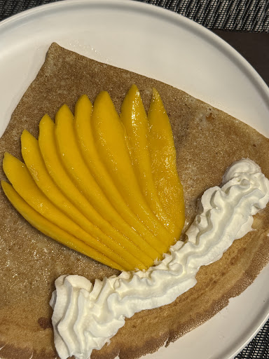 Mango Chantilly, crepe with mangoes and whipped cream, is a delight of simplicity, with an outstanding star of the dish(m, the crepe itself, that could stand on its own.
