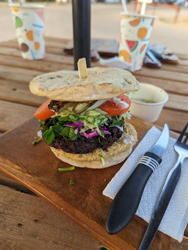 The hummus burger was juicy and meaty and the fresh hummus tasted unreal!