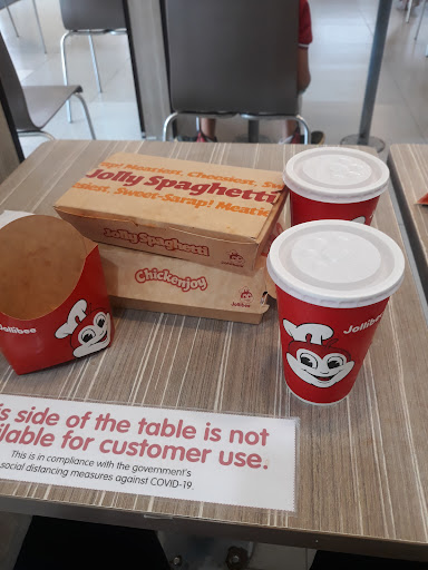 At this moment that we are on a pandemic, this Jollibee branch has complied with the safety protocols given by the government, especially social distancing. All tables and utilities are disinfected, health forms are also provided before entering the establishment. No face mask no entry policy, foot bath and temperature checking is a must also before entering. Counters are fully covered with thick plastic. All staffs and crews are wearing face shields and face masks.Dine in and take out lanes are separated. Alcohol and sanitizers are everywhere. They are also using disposable plates, cups, spoon and fork to avoid physical contact.
