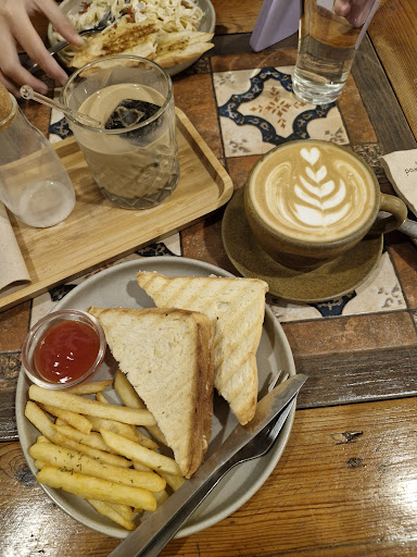 We ordered iced spanish latte, iced salted caramel latte, classic cheesecake and a chicken sandwich. The foods were okay. But the drink is more on the milk side. Wasn’t able to taste the coffee in it. Which is disappointing as their coffee in the SM branch was good.