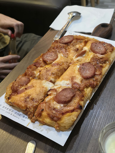 Coffee was good as usual, but the food? So good! We had the baked chicken parmesan, all meat pizza, Basque burnt cheesecake, and crepe cake — everything was delicious. As a cheesecake lover, I'm picky with cheesecake, but theirs was legit. Will definitely order that again!