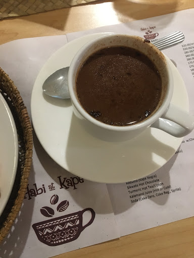 If you want to have just light snacks - and you want to veer away from the usual burgers, pizza and fries stuff - then go to this resto at the 3/F of Abreeza in the BPO Lobby side. It's not too crowded ( place is away from most stores and shoppers passing by...) plus you will feel the "homey, local/native ambiance." Interiors are tastefully decorated with everything local. Perfect for our balikbayan relatives whom we accompanied here for some catch-up cum snacks. We all had the suman and sikwate which I think are their staples/most ordered - perfect match. Although the day is hot being summer, we enjoyed drinking the hot chocolate - not too sweet and so good. It's like the old-fashioned chocolate prepared for us by our grandmothers. The "batirol" way! The suman was garnished with dark chocolate on top and it's good, too. Light and yummy! Have yet to try their other dishes - like the pancit luglug, pasta with tinapa and the rest. Plus their coffee. All in all, a great experience - the place was pretty full the late afternoon we were there this week. Too bad we wanted to try the "special biko" but it was already sold-out. Maybe next time. Worth a visit and we...