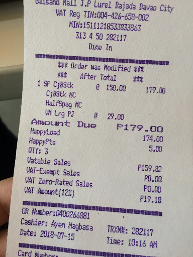 Read moreFood is just as good as a normal Jollibee. My partner and I had a quick snack and we had no issues whatsoever, the food came hot and fresh as well. What made me give a 5 star was the outstanding service! We came around 4-5 in the afternoon and these two boys were accommodating everyone above and beyond! It's a shame we didn't get their names but they were very welcoming and they made sure we got what we needed. First they greeted our arrival with exaggeration, just in a sweet and welcoming tone and then as soon as the beeper started alarming, this one boy brought our order upstairs just as I was coming down. He was so gentle and although he was wearing a mask, I can tell by his eyes that he was smiling. 15-20 minutes of me and my partner eating and chatting, the other boy went on our table to quickly ask us if we needed water. Where did this branch get these boys by the way?? Pretty sure they aren't paid enough to be this accommodating yet you can tell they love their job. I can also tell that they're probably newbies and maybe part-time workers as they sounded youthful. I cannot expect the same service for every other staff on every other branch but a soft and welcoming voice goes a long way. Hope your cashiers apply them. Thank you again to those two boys who made our dining...