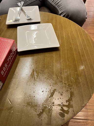 This is the first time we dine in here, kasi usually take out, but unfortunately, I dont like the service given to us. There are small tables, no chairs, and THERE ARE COCKROACHES! Gross. Guard says its prolly because of the pesticides that they sprayed pero really?hindi namatay ang roaches, saw 2 of them. And when I asked for their staff to clean our table, she did not even clean it. She just pick up the dirty things on the table but did not bother to clean it. In short - DAMAK. Ako nalang nag spray ng alcohol sa table. And ako nalang din nagpunas using our own tissue. See picture for reference. Yang wet part ng table galing yan sa previous na kumain. I love KK, but would not recommend buying in this branch....