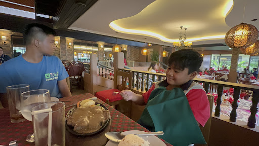 Was so unhappy with the food! The calamares was too tough and chewy. They use the same thousand island dressing for their coleslaw, calamares and fries dipping sauce. We ordered boneless lamb leg but it tasted like beef! We ordered the T-bone (the meat was tender pero matigas yung litid sa paligid), marbled ribeye (over seasoned, overcooked), grilled Pompano (looked like pan fried to me and served on a sizzling plate; no grill marks; tender and yummy), creamy spaghetti with ham (actually tomato based, I thought this was cream based, perfect for kids), crab missua soup (it was ok).
