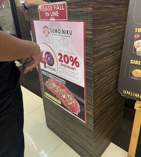 We arrived at Sumo Niko Davao at 1:18 PM and saw a large banner advertising a 20% discount for groups of 4 or more dining in. Wanting to confirm the details, we approached a staff member named Karen. She stepped inside to check and returned with a clear answer: