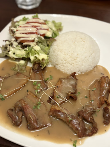 My go-to dish is their rosemary pork. The serving is generous, with ample, tender pieces of meat that remain flavorful and lightly crisp on the edges. The savory gravy pairs well with the meat, and the accompanying salad is fresh and adequately portioned.