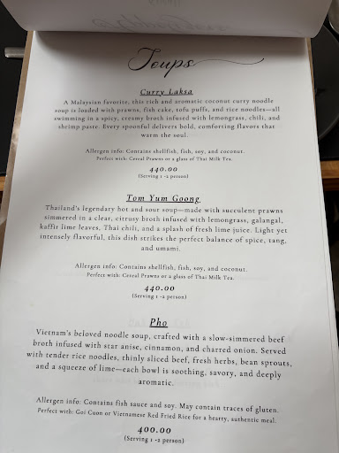 Their menu offered a good variety of Asian dishes, which we were excited to try. There was only one waitress serving all customers, and while she was polite and upfront about the expected 30-minute wait time, our food ended up taking over an hour to be served. We only ordered three items: Tom Yum Goong, Goi Cuon, and a chicken dish.