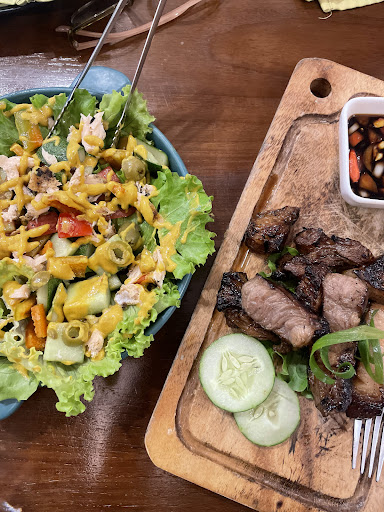 Read moreMy sister had highly recommened this place but it was quite a disappointing experience. Nacho chips were stale, although the toppings had good flavor. Pork steak was a bit tough. The rosemary chicken was really tasty and well cooked. Beef and chicken burgers tasted fine. The steak was served super early however the rice arrived almost 30 minutes after it. Tom yum soup was just okay. The club sandwich had a really good portion but was quite salty. The food also came out really slow with the drink order getting mixed up. The supervisor, Ronald, was given feedback which he graciously accepted. We ended up getting the drinks for free. A lot of the things on the menu were unavailable. Food portions were actually quite generous. The ambiance of the place was quite homey and I particularly loved the piano music. The staff were quite accomodating, maybe it was just a bad day at the kitchen. Will still come back to try...