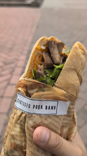 I ordered the shredded pork banh mi. It was kinda underwhelming because I was expecting Vietnamese flavors. Coriander was there, but it lacked the liver pate and pickled veggie taste. The bread was OK, but it's more of a crossover between baguette and pandesal. Clearly, it is for the Pinoy palate. The last irk I had is how shredded the pork was--it was more of chopped, I had a hard time eating those chunks.