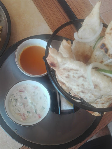 Butter chicken: The portion was okay for the price; the taste was awesome. There were some big boneless chicken pieces inside. ππ€€ The herbs and spices gave a yummy flavor, and it was not too hot spicy. Also, the typical Indian bread was tasty. π―π