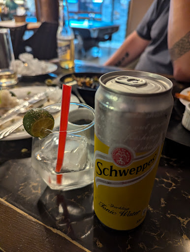 Service is outstanding , you don't have to wait for them to look at you to order, they pay attention to you all the time, takes order and serves them very efficiently, the staff are constantly working, cleaning the bottles, tables, checking in on customers, just so wonderful and very professional overall.