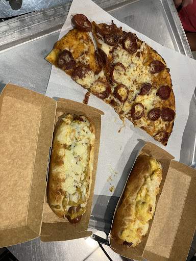 Read moreWe were looking for a clean and air conditioned pizza stop downtown, and Yellow Cab was perfect. We ordered two pizzas and two baked dogs and had leftovers. We even realized we stopped 15 mins before they closed and they were very kind and didn’t make us feel rushed. The pizza was thin, even ordering both Original crust and the Hawaiian was gone before I could take a picture. The Original Dog was the preferred baked dog. Highly...