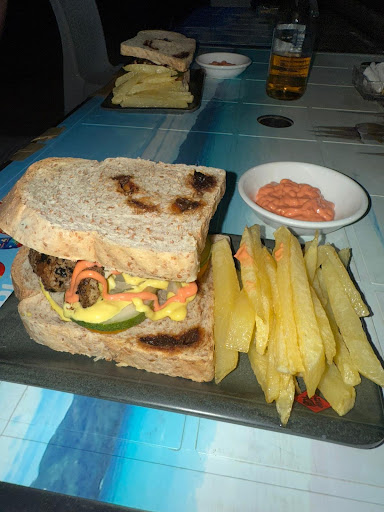 Read moreChicken burger. Judge for yourself. There was barely any chicken in it, and since they didnât have burger buns, they served it on plain toastâbut still charged the full burger price.
