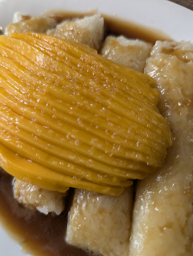 Finally, to end our meals on a sweet note, we couldn't resist the Suman na Mango. This traditional Filipino dessert, with sticky rice and fresh, ripe mango, was the perfect light finish to our meal.