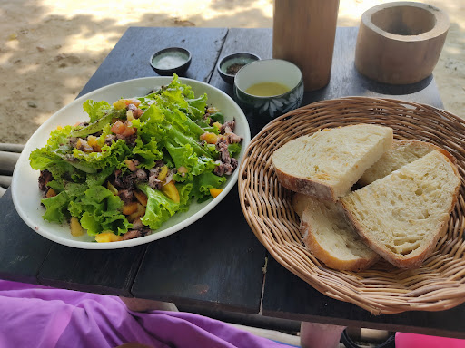 I had an amazing time and delicious food at La Plage. I was searching for a relaxing break from the boat tours and this place exceeded my expectations. I got a comfy seat on a big materasse in front of the beach, protected by the shade of the threes, overlooking at the sea. The location offers also a pool however the sea here is very quiet and the send is soft without rocks perfect for a swim but if you are looking for snorkelling, this is not the place.