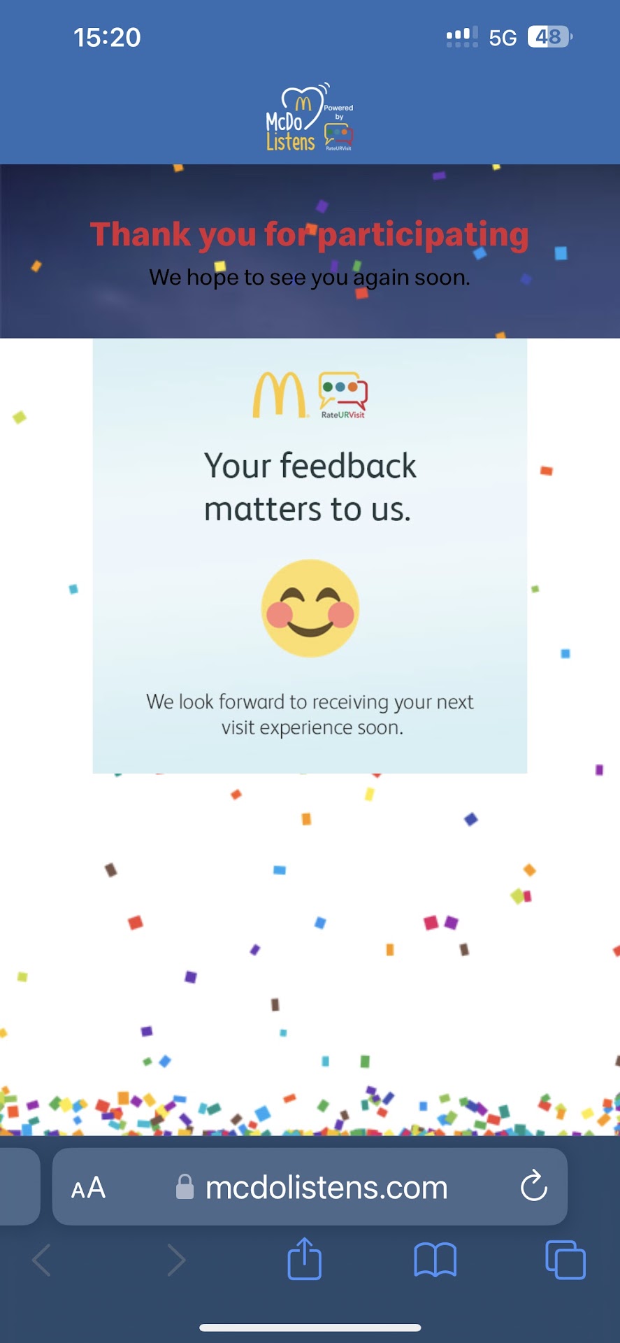 The actual food is fine (will edit this review if I start throwing it up), however everything else about this McDonalds makes me think that it’s not fit to be associated with the McDonald’s chain as it is nowhere near the usual standards of restaurants you find overseas.