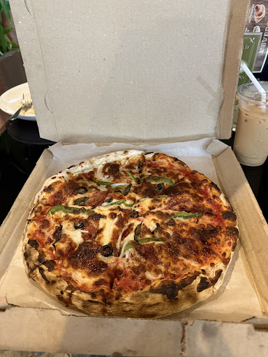 The Anju Rinna pizza was good! We had garden salad, a pizza, a Spanish latte, and later ordered the Japanese-style beef stew.