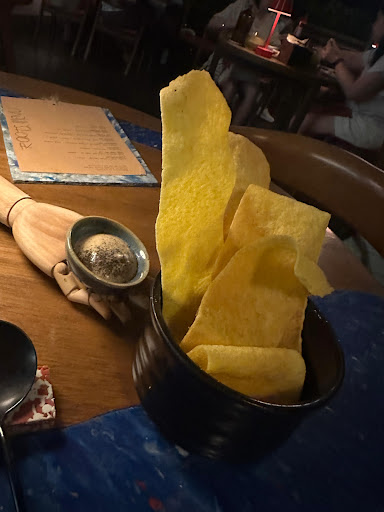 While waiting, I was served crispy cassava chips with their special onion dip. It was simple yet sophisticated, the perfect introduction to what lay ahead. Then came Breaking Bread: three types of bread served with homemade butter, paired with their version of carpaccio. The server explained each component with detail and passion, setting the tone for the evening.