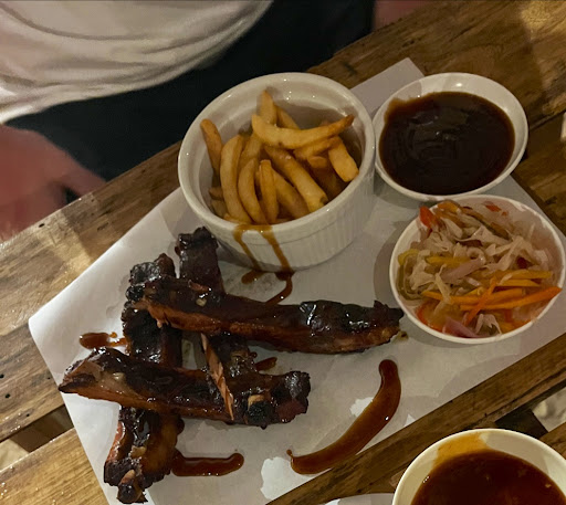 690(!)pesos for this tiny portion of only 4 ribs - which they call a ‘half slab’ of 350g. Anyone that’s eaten ribs before knows that these 4 ribs are not worthy of being called a half slab. Perhaps it weighs 350g, but again should not be called a half slab. This is their largest portion, which they sell as a main course… The serving included a tiny portion of fries, and pickled veggies that were less than interesting. The ribs themselves were okay, they tasted good, lacked the wow factor though, not falling off the bone, and little meat - again not consistent with the price they’re asking.