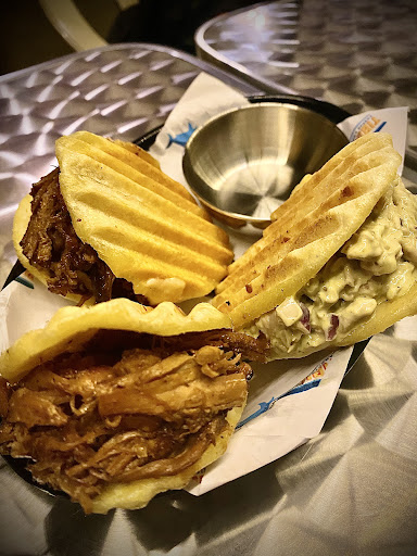 Loved the crunchy chewy texture of the arepas - and they were overflowing with the filling! The accompanying sauces were also really complementary to the flavors.